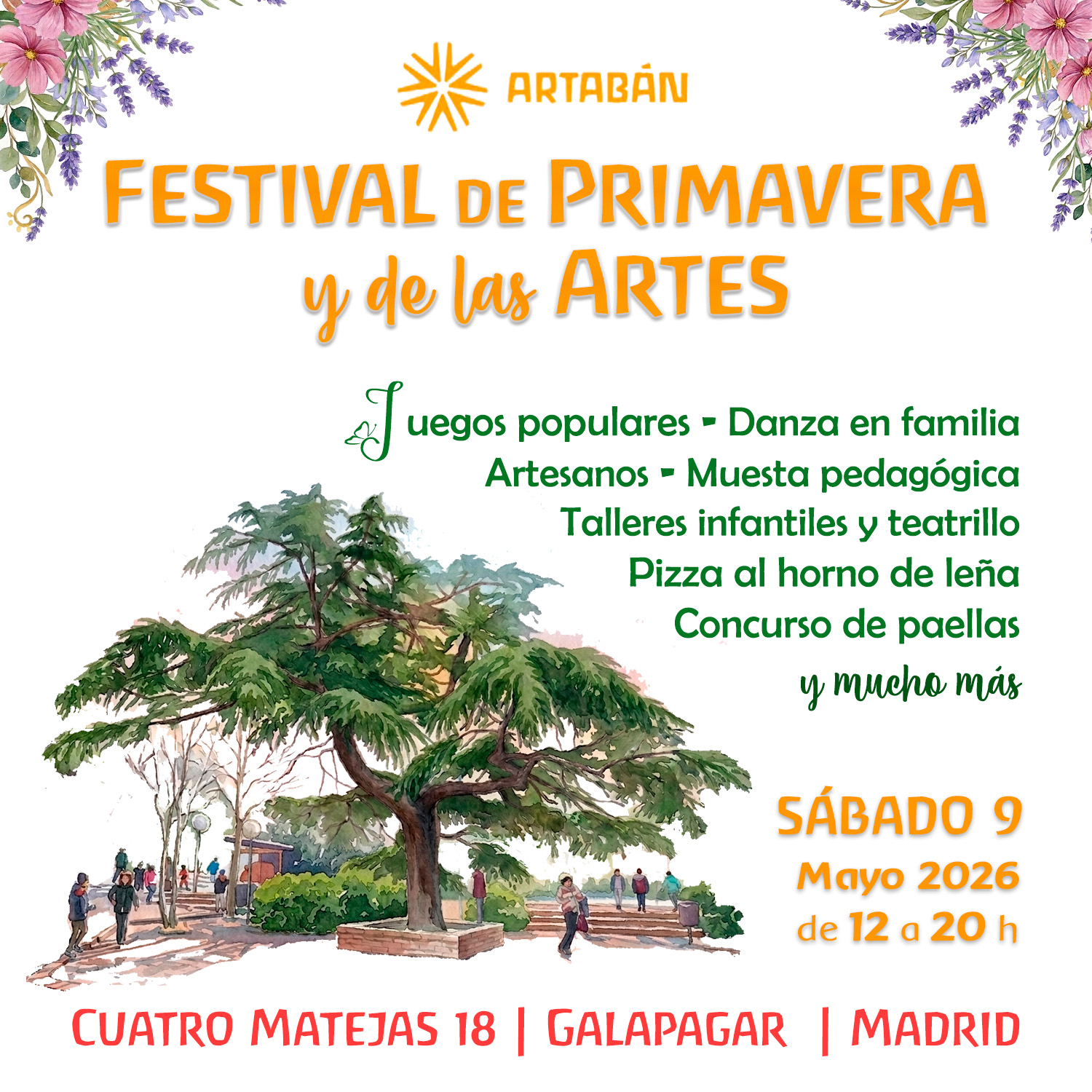 El sábado 9 de mayo celebraremos en Artabán el Festival de Primavera y de las Artes, una jornada abierta para encontrarnos, compartir y pasar juntos una jornada festiva.
