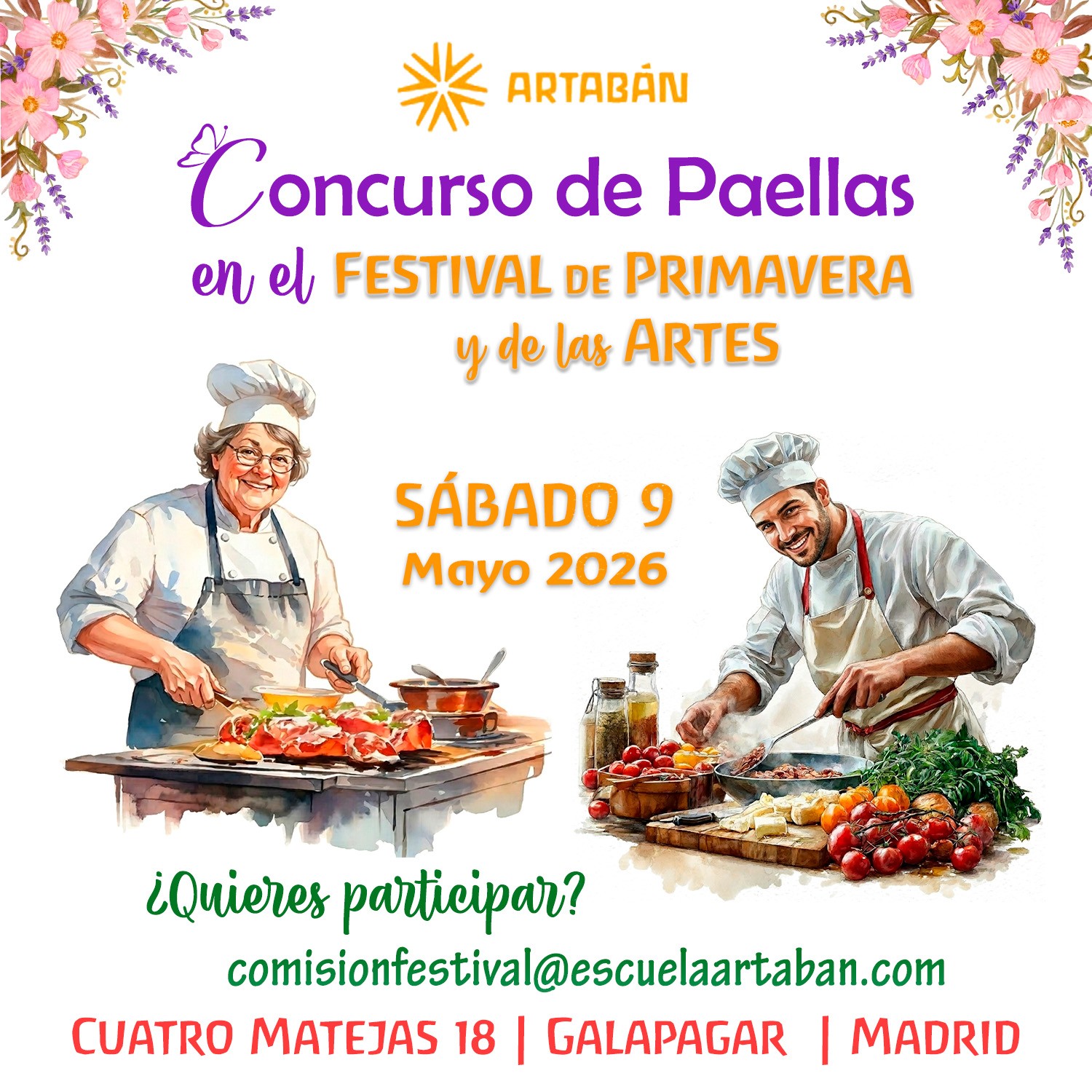 Será una ocasión muy bonita para conocer de cerca la escuela, pasar el día en un entorno cuidado y disfrutar de una propuesta pensada para grandes y pequeños. Si quieres participar en el Concurso de Paellas, puedes escribirnos a comisionfestival@escuelaartaban.com.